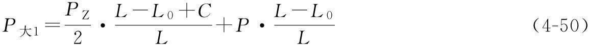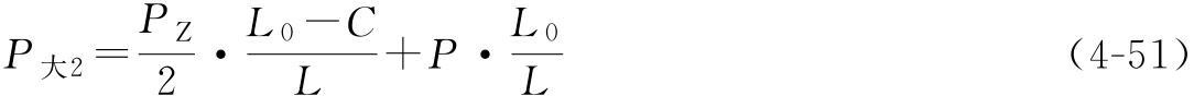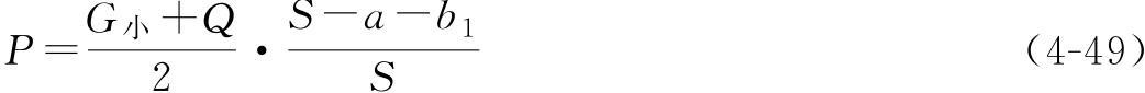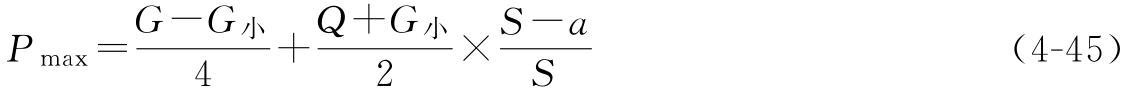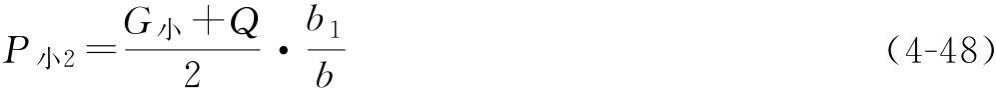 大车*大轮压在小车的自重和额定蜜桃视频APP下载量作用下,通过小车车轮传递到主梁的小车轨道上,再传递到大车端梁上,加上大车重量平均分摊到四角车轮组上的轮压。所以,*大大车轮压需先计算出小车车轮传递到主梁的小车轨道上的压力P小1、P小2(图4-47)。