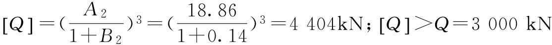 φ2=1.22;φ4=1.24;GXC=580000N;Gq=1380000N;Q=3000000N;B1=2018mm;B2=1578mm;δ1=δ2=δ3=δ4=24mm;b0=1430mm;[τ]=80MPa;Ix=14.56×109mm4。