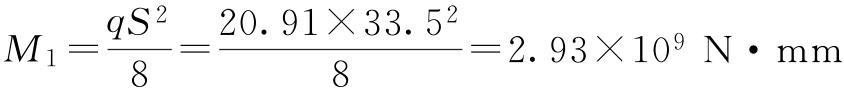 均布载荷在跨中引起的*大弯矩: