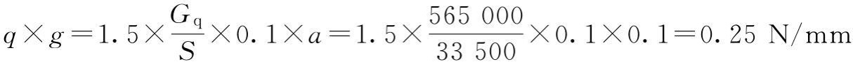 Pg=1.5(GXC+Q)×0.1×0.5×a=1.5×(58+300)×104×0.1×0.5×0.1=2.69×104N